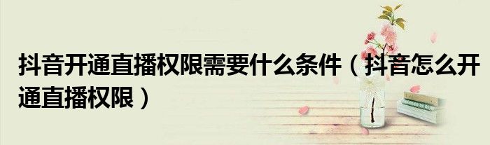 大家好,小晋来为大家解答以下问题,关于抖音开通直播权限需要什么条件,抖音怎么开通直播权限很多人还不知道,今天让我们一起来看看吧!