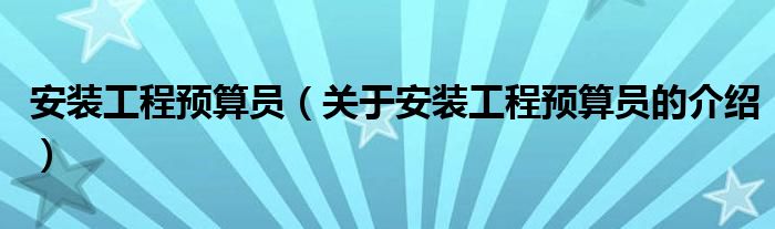 大家好,今天小乐来为大家解答以上的问题。安装工程预算员,关于安装工程预算员的介绍很多人还不知道,现在让我们一起来看看吧!