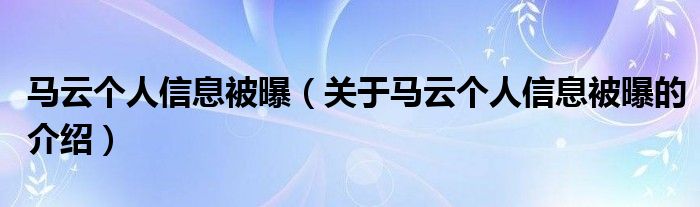 马云个人信息被曝(关于马云个人信息被曝的介绍)