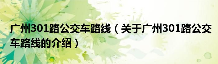 广州301路公交车路线(关于广州301路公交车路线的介绍)