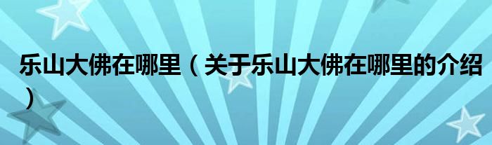 大家好,小都来为大家解答以上的问题。乐山大佛在哪里,关于乐山大佛在哪里的介绍很多人还不知道,现在让我们一起来看看吧!