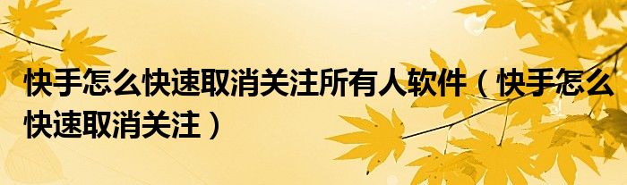 大家好,小晋来为大家解答以下问题,关于快手怎么快速取消关注所有人软件,快手怎么快速取消关注很多人还不知道,今天让我们一起来看看吧!
