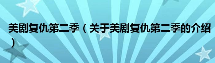 大家好,小都来为大家解答以上的问题。美剧复仇第二季,关于美剧复仇第二季的介绍很多人还不知道,现在让我们一起来看看吧!