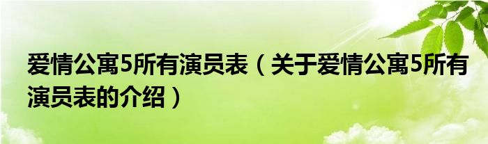 爱情公寓5所有演员表(关于爱情公寓5所有演员表的介绍)