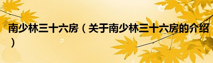 大家好,小都来为大家解答以上的问题。南少林三十六房,关于南少林三十六房的介绍很多人还不知道,现在让我们一起来看看吧!
