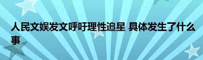 大家好.我是互联百科的羽儿,现在为大家解决以上人民文娱发文呼吁理性追星 具体发生了什么事的问题.