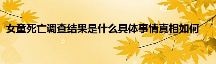 大家好.我是互联百科的羽儿,现在为大家解决以上女童死亡调查结果是什么具体事情真相如何的问题.