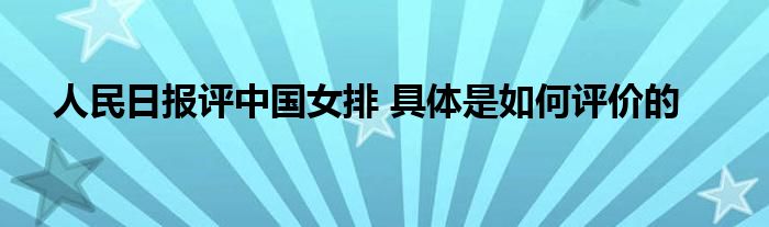 人民日报评中国女排具体是如何评价的