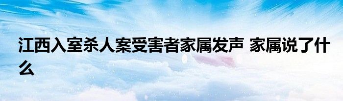 大家好.我是互联百科的羽儿,现在为大家解决以上江西入室杀人案受害者家属发声 家属说了什么的问题.