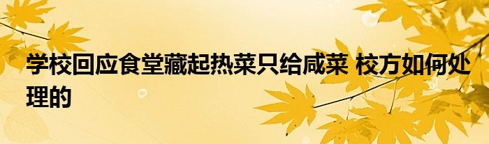 大家好.我是互联百科的羽儿,现在为大家解决以上学校回应食堂藏起热菜只给咸菜 校方如何处理的的问题.