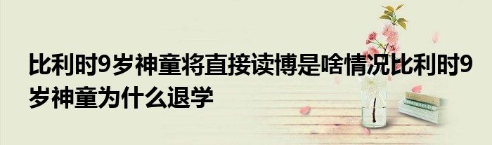 1、比利时9岁神童将直接读博是什么情况?比利时9岁神童为什么退学?