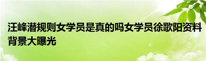 大家好.我是互联百科的羽儿,现在为大家解决以上汪峰潜规则女学员是真的吗女学员徐歌阳资料背景大曝光的问题.