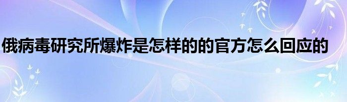 大家好.我是互联百科的羽儿,现在为大家解决以上俄病毒研究所爆炸是怎样的的官方怎么回应的的问题.