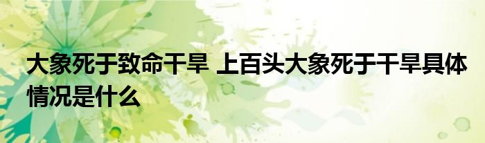 大家好.我是互联百科的羽儿,现在为大家解决以上大象死于致命干旱 上百头大象死于干旱具体情况是什么的问题.