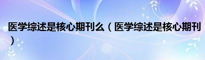 关于医学综述是核心期刊么,医学综述是核心期刊这个很多人还不知道,今天菲菲来为大家解答以上的问题,现在让我们一起来看看吧!