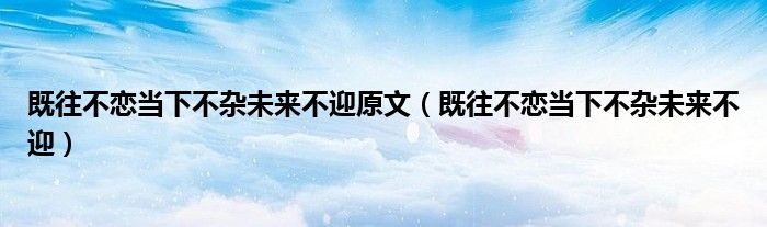 关于既往不恋当下不杂未来不迎原文,既往不恋当下不杂未来不迎这个很多人还不知道,今天菲菲来为大家解答以上的问题,现在让我们一起来看看吧!