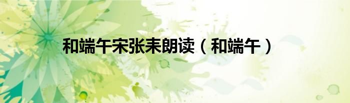 关于和端午宋张耒朗读,和端午这个很多人还不知道,今天菲菲来为大家解答以上的问题,现在让我们一起来看看吧!