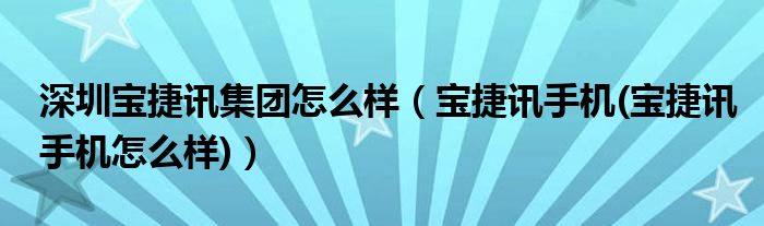 深圳宝捷讯集团怎么样(宝捷讯手机(宝捷讯手机怎么样))