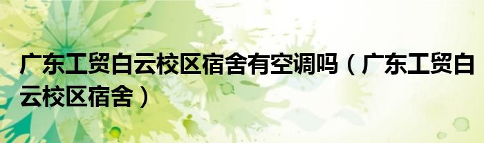 关于广东工贸白云校区宿舍有空调吗,广东工贸白云校区宿舍这个很多人还不知道,今天菲菲来为大家解答以上的问题,现在让我们一起来看看吧!