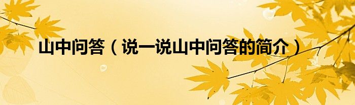 山中问答(说一说山中问答的简介)
