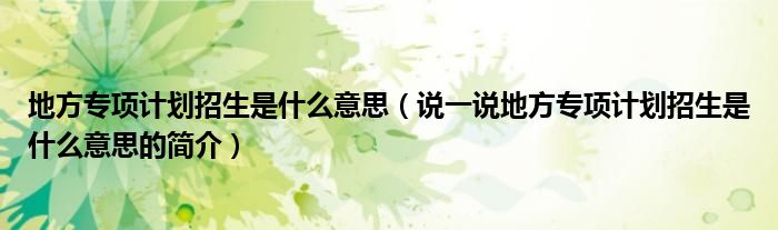 地方专项计划招生是什么意思(说一说地方专项计划招生是什么意思的简介)