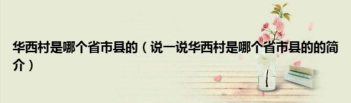 华西村是哪个省市县的(说一说华西村是哪个省市县的的简介)