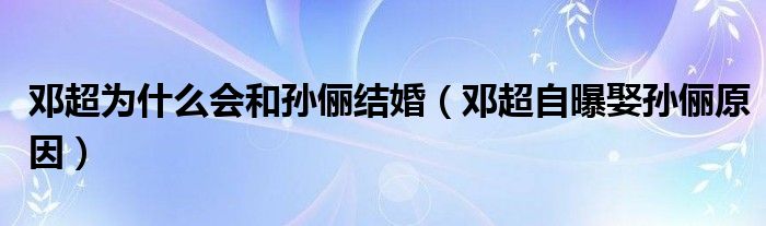 邓超为什么会和孙俪结婚(邓超自曝娶孙俪原因)