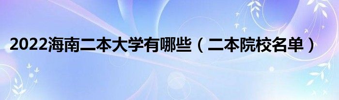 2022海南二本大学有哪些(二本院校名单)