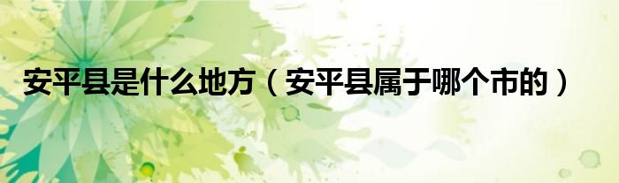 关于安平县是什么地方,安平县属于哪个市的这个很多人还不知道,今天菲菲来为大家解答以上的问题,现在让我们一起来看看吧!
