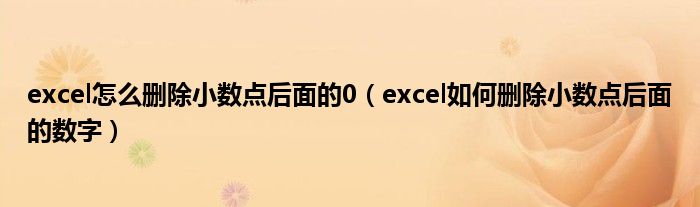 excel怎么删除小数点后面的0(excel如何删除小数点后面的数字)