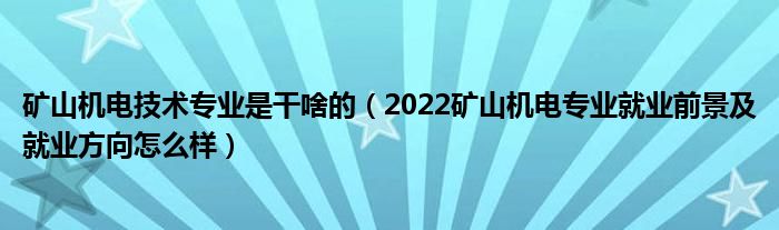 最佳答案大家好,乐儿来为大家解答以下问题,矿山机电技术专业是干啥的,2022矿山机电专业就业前景及就业方向怎么样很多人还不知道,现在让我们一起来看看吧!一、矿山机电专业的就业前景:1、矿山机电专业的就业前景非常不错,我国这方面的人才紧缺,学生在校未毕业就会被提前招走。矿山机电专业学生毕业后...