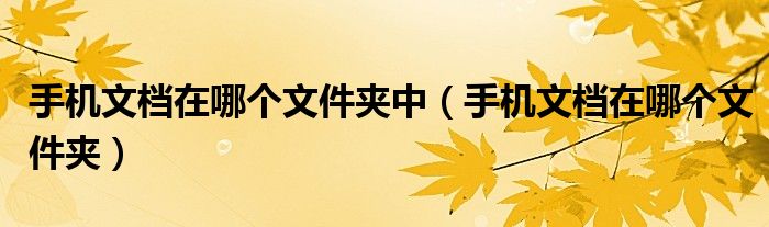 关于手机文档在哪个文件夹中,手机文档在哪个文件夹这个很多人还不知道,今天菲菲来为大家解答以上的问题,现在让我们一起来看看吧!