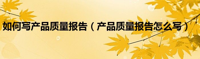 关于如何写产品质量报告,产品质量报告怎么写这个很多人还不知道,今天菲菲来为大家解答以上的问题,现在让我们一起来看看吧!