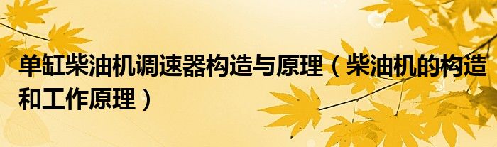 单缸柴油机调速器构造与原理(柴油机的构造和工作原理)