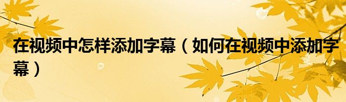 关于在视频中怎样添加字幕,如何在视频中添加字幕这个很多人还不知道,今天菲菲来为大家解答以上的问题,现在让我们一起来看看吧!