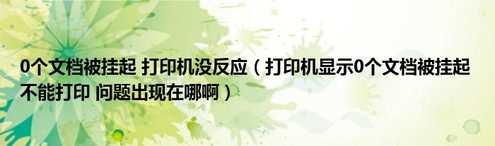 关于0个文档被挂起 打印机没反应,打印机显示0个文档被挂起 不能打印 问题出现在哪啊这个很多人还不知道,今天菲菲来为大家解答以上的问题,现在让我们一起来看看吧!
