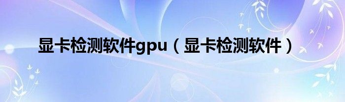 显卡检测软件gpu(显卡检测软件)