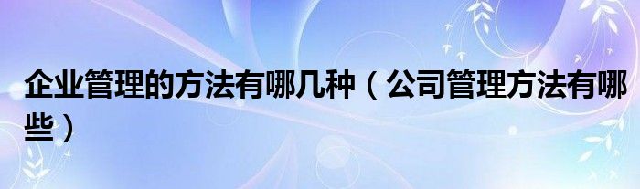 大家好,小华来为大家解答以上的问题。企业管理的方法有哪几种,公司管理方法有哪些这个很多人还不知道,现在让我们一起来看看吧!