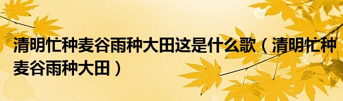 关于清明忙种麦谷雨种大田这是什么歌,清明忙种麦谷雨种大田这个很多人还不知道,今天菲菲来为大家解答以上的问题,现在让我们一起来看看吧!