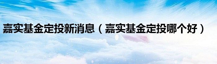 嘉实基金定投新消息(嘉实基金定投哪个好)