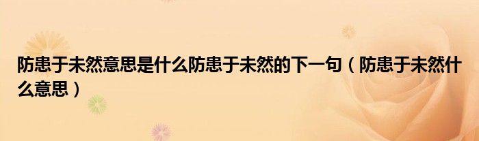 大家好,我是小科,我来为大家解答以上问题。防患于未然意思是什么防患于未然的下一句,防患于未然什么意思很多人还不知道,现在让我们一起来看看吧!