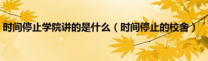 大家好,我是小科,我来为大家解答以上问题。时间停止学院讲的是什么,时间停止的校舍很多人还不知道,现在让我们一起来看看吧!