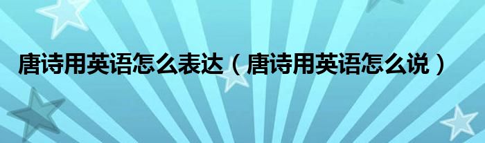 大家好,我是小科,我来为大家解答以上问题。唐诗用英语怎么表达,唐诗用英语怎么说很多人还不知道,现在让我们一起来看看吧!