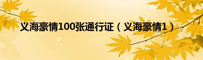 大家好,我是小科,我来为大家解答以上问题。义海豪情100张通行证,义海豪情1很多人还不知道,现在让我们一起来看看吧!