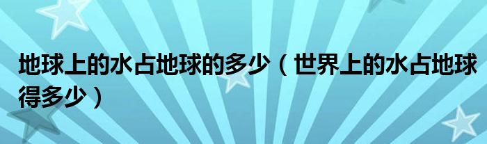 大家好,小夏来为大家讲解下。地球上的水占地球的多少,世界上的水占地球得多少很多人还不知道,现在让我们一起来看看吧!