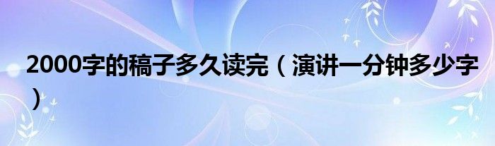 大家好,我是小科,我来为大家解答以上问题。2000字的稿子多久读完,演讲一分钟多少字很多人还不知道,现在让我们一起来看看吧!