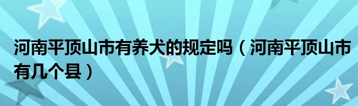 河南平顶山市有养犬的规定吗(河南平顶山市有几个县)