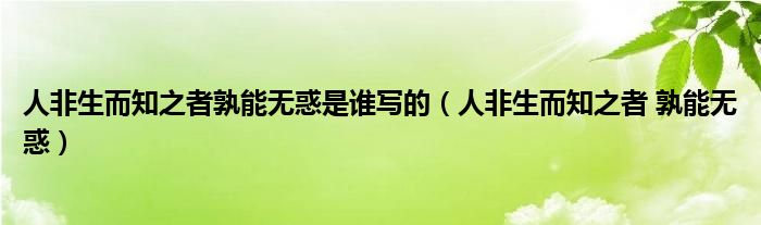 人非生而知之者孰能无惑是谁写的(人非生而知之者 孰能无惑)