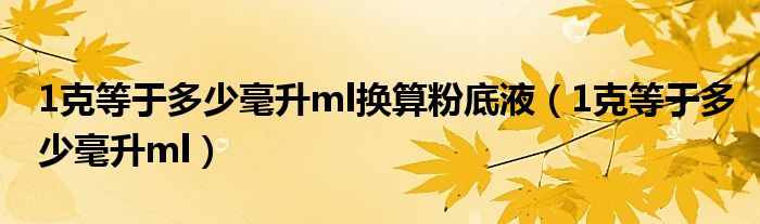 大家好,我是小科,我来为大家解答以上问题。1克等于多少毫升ml换算粉底液,1克等于多少毫升ml很多人还不知道,现在让我们一起来看看吧!