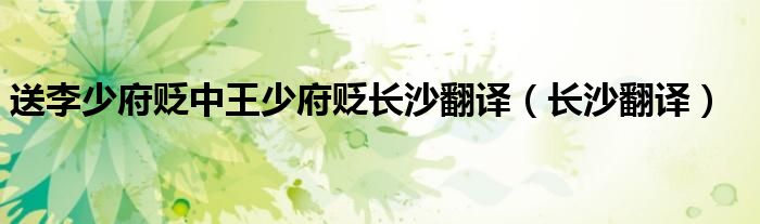 送李少府贬中王少府贬长沙翻译(长沙翻译)